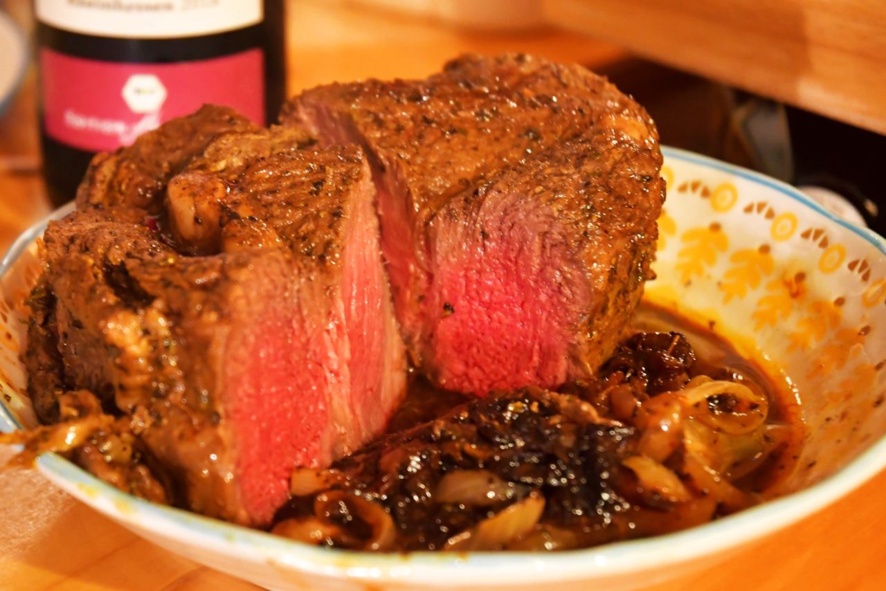 僕も以前に友人とのパーティでミートガイの牛肉を使ったローストビーフを作りましたが、かなり美味しくできましたよ! 画像はその時に作ったローストビーフです。ちなみにお肉は牛リブロース。